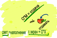 Я не знаю, что представляет собой свет, существующий вне меня. Свет, находящийся во мне, называется наполнением – экран и отраженный свет (О"Х). Экран – это мое сопротивление, отраженный свет – это моя отдача, и все это – мои свойства, равные свету.