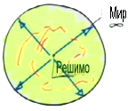 Но если говорить об ощущении, то есть в нас его решимо, и мы должны развить его до масштабов Бесконечности - достичь в своем ощущении, восприятии, впечатлении такого состояния, чтобы все пространство Бесконечности вошло внутрь решимо – то есть решимо, раздуваясь, поглотило бы в себя все, существующее в этой бесконечной сфере.