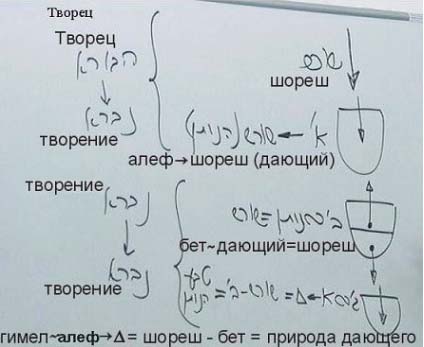 И тогда она желает стать подобной Дающему. Поэтому вторая стадия («бхина бет») – это уподобление Дающему. Но став подобной Дающему, т.е. равной корневой стадии, она осознаёт, что уподобиться корню может только в действии: он даёт – и бхина бет ощущает потребность в отдаче. Поэтому постигнув шореш, осознав, что он отдаёт, бхина бет становится дающей. Тогда она строит третью стадию («бхина гимель»), подобную первой – как та получает, так и эта. С одной лишь разницей: бхина алеф возникла, поскольку Творец создал её такой – получающей, тогда как бхина гимель построена самим творением. Теперь само творение, бхина бет, повторяет действие Творца. Таким образом, мы видим две пары: дающий – получающий и снова дающий – получающий. В первом случае дающий – Творец, получающий – творение, во втором случае и дающий и получающий – творение. Бхина гимел обнаруживает, что хотя и подобна бхине алеф, но кто, в сущности, даёт ей свет? Она ощущает, что свет даёт её предыдущая стадия – бхина бет. Таким образом она постигает бхину бет. Из постижения бхины бет она постигает бхину алеф, а затем и шореш. В сущности, она постигает разницу между стадиями бет и шореш.